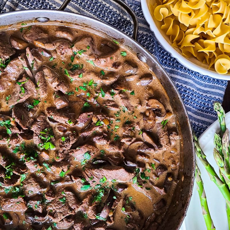 Бефстроганов из печенки с черносливом